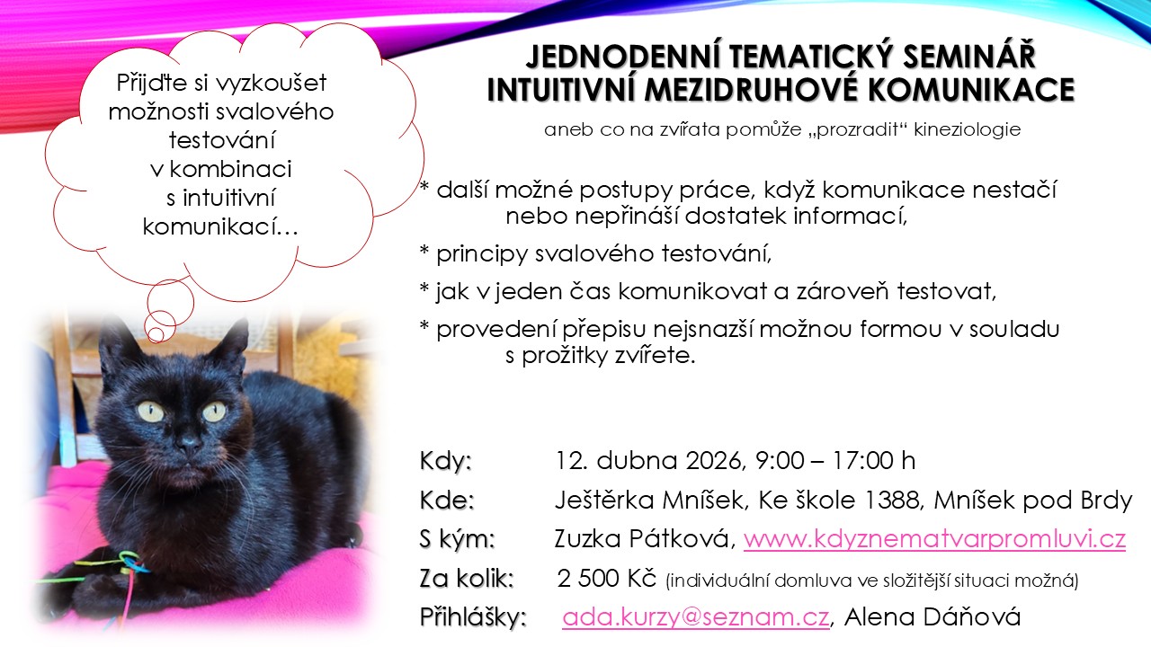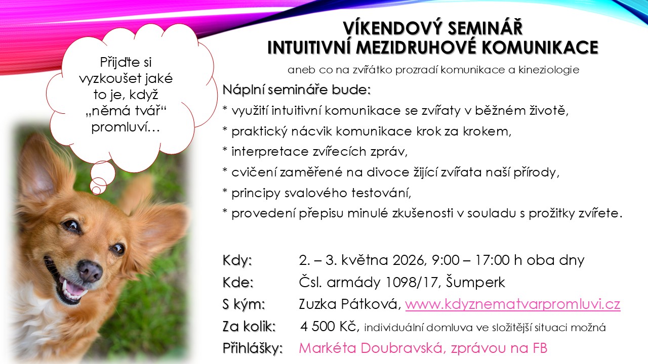 a kineziologie, kdy zvířata stejně jako my lidé prožívají různé situace, které se propisují do struktury jejich bytosti. PŘIHLÁŠENÍ PŘES FB UDÁLOST