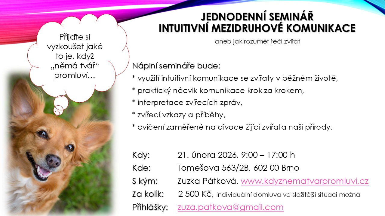 a odchod z fyzického těla, je celá situace jemnější a člověk se může nechat vést zvířetem a jeho potřebami. Seminář je věnován všem, které toto téma osloví